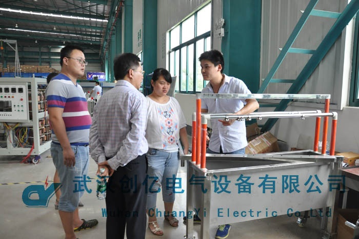 而后帶領客戶前往展廳參觀,客戶在參觀的過程中對我司的大部分產品都產生了濃厚的興趣。并參觀了我司的小型設備的生產裝配車間。隨后在技術人員的帶領下,客戶前往我司廠房進行參觀。并對我司的GIT以及三相大電流溫升設備等儀器產生興趣。