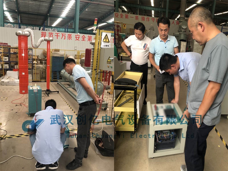 隨后一同前往生產(chǎn)車間詳細了解我們的生產(chǎn)流程、裝配過程、質(zhì)檢程序等內(nèi)容。在生產(chǎn)車間,我們的技術(shù)員對其客戶感興趣的CYTF系列串諧試驗裝置做了實地演示。