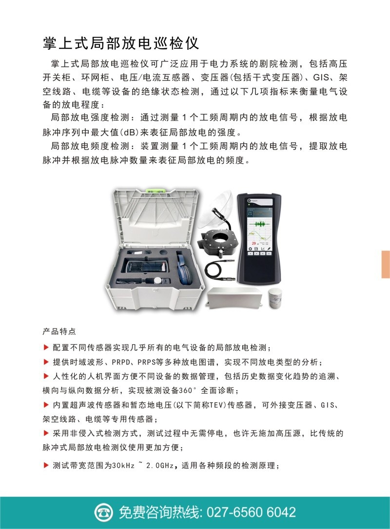 5. 采用非侵入式檢測方式,測試過程中無需停電,也許無施加高壓源,比傳統的脈沖式局部放電檢測儀使用更加方便