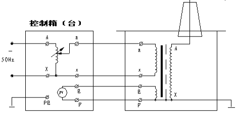 圖3:交流氣體式試驗(yàn)變壓器接線 2. 交流帶抽頭氣體式試驗(yàn)變壓器:見(jiàn)圖4