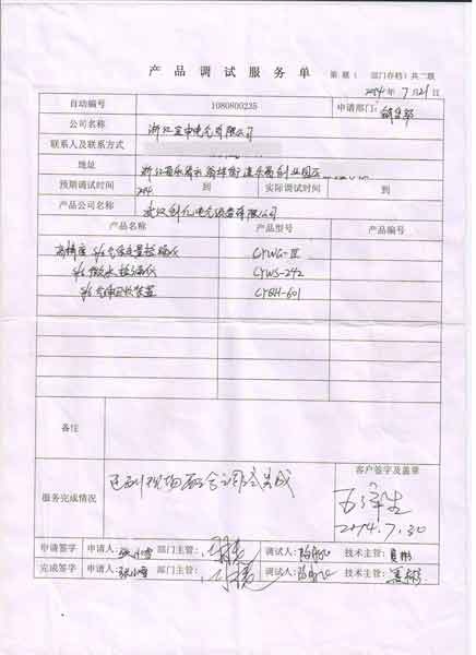 2014-07-21 浙江寶申電氣進(jìn)行調(diào)試服務(wù),調(diào)試產(chǎn)品:CYWG-III 高精度SF6氣體定量檢漏儀 CYWS-242 SF6微水測量儀 CYQH-601 SF6氣體回收裝置
