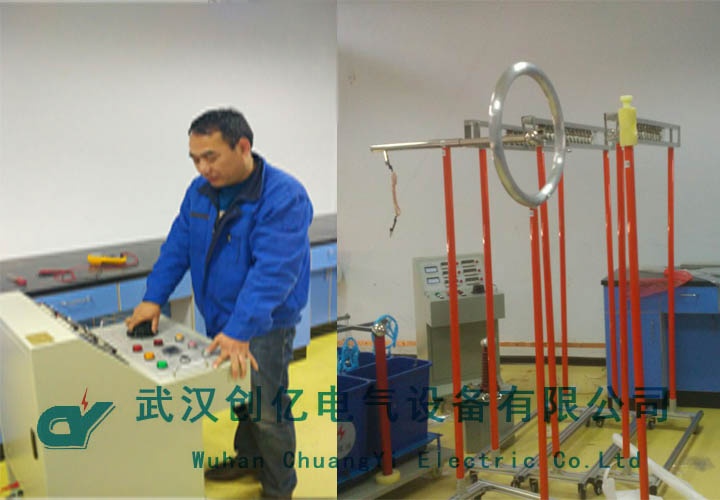 然后調試的設備是CYJS-615,主要做了35KV驗電器的啟動電壓試驗以及正反向干擾等試驗,試驗過程中,我司技術人員從接線到絕緣桿的擺放到設備的操作以及測試結果的分析都詳細的向客戶進行講解。