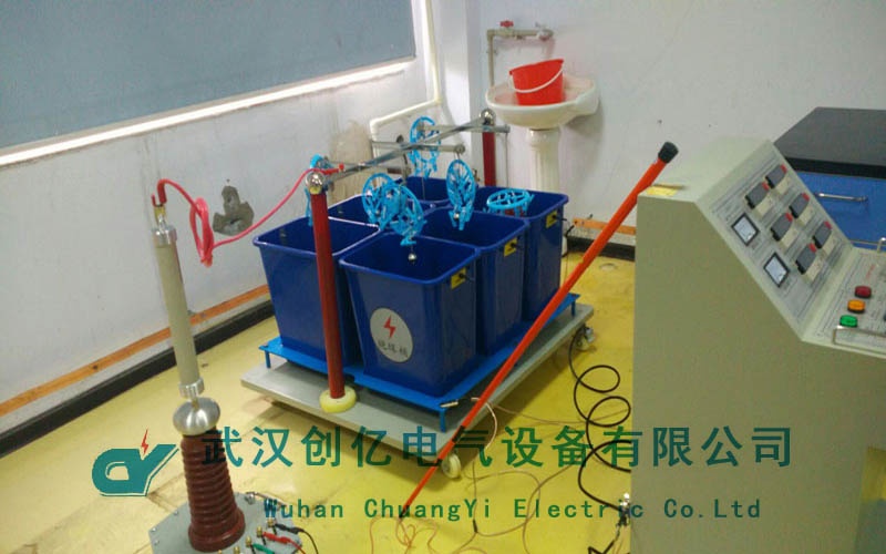 我司技術人員剛到衡水質檢所,就和其負責人王工前往實驗室進行試驗。首先檢測的是10KV的帶電作業的絕緣手套。其絕緣性能的好壞直接影響到工作人員的生命安全,因此在測試過程中更為的小心謹慎,務必使測量結果更精準。我司技術人員認真演示了整個試驗過程,做試驗過程中對于一些測試中需要注意的事項進行講解,例如要保證絕緣手套露出水面的高度為400mm±13mm等。使客戶能在調試培訓的過程中盡快的學習到設備的使用方法和注意事項。