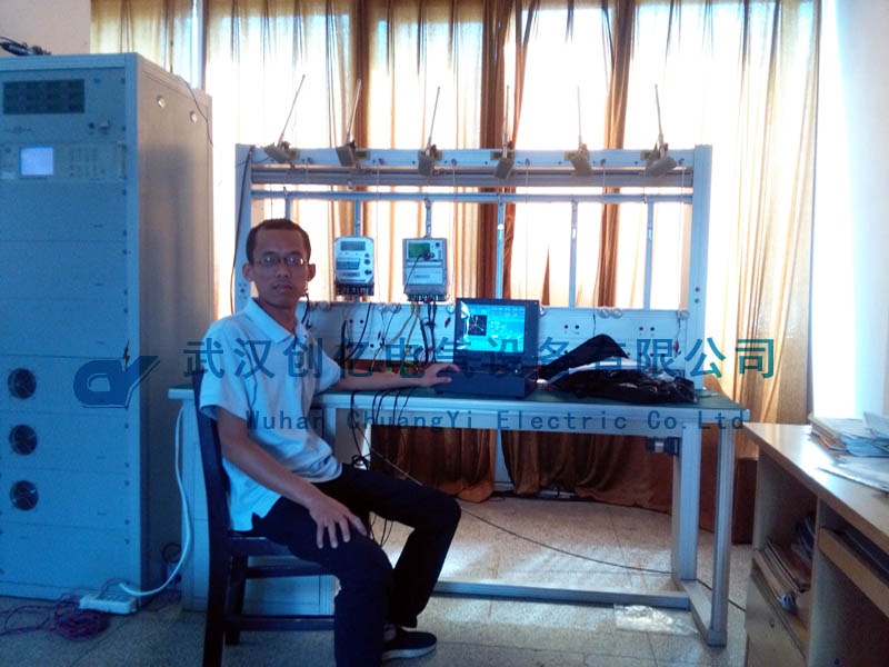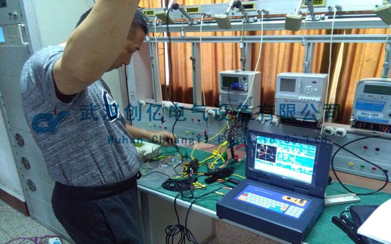 現(xiàn)場采用客戶的三相三線電能表為被試品向客戶進行操作演示,并培訓客戶使用我們的產(chǎn)品。我司技術人員先和電站人員前往實驗室進行試驗。首先使用電能表校驗臺模擬電能表的負荷,指導客戶動手操作,將CYYM-3B的電壓電流線接到三相三線的電能表上。然后進行模擬實驗。