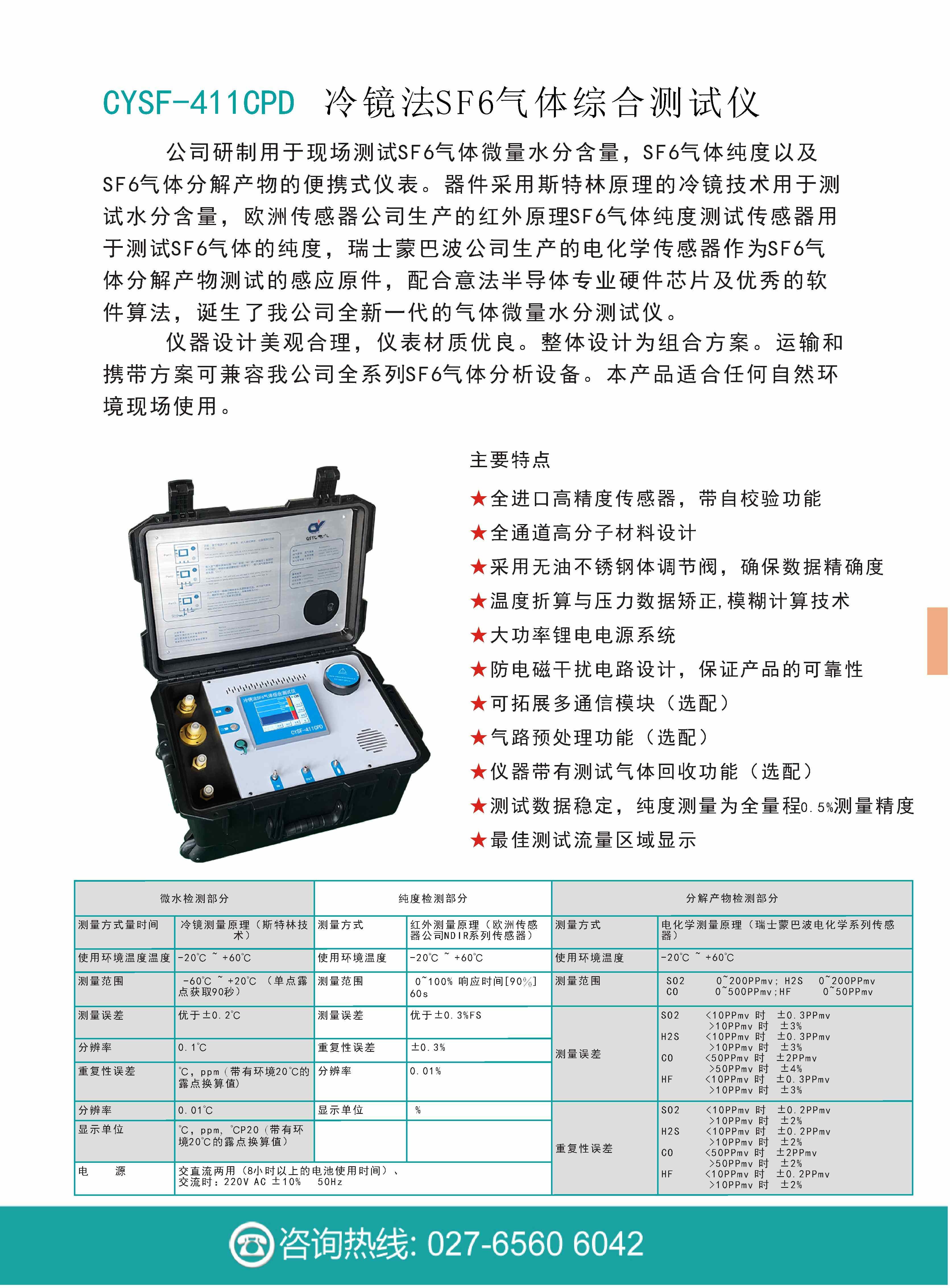 CYSF-411CPD冷鏡法SF6氣體綜合測試儀
